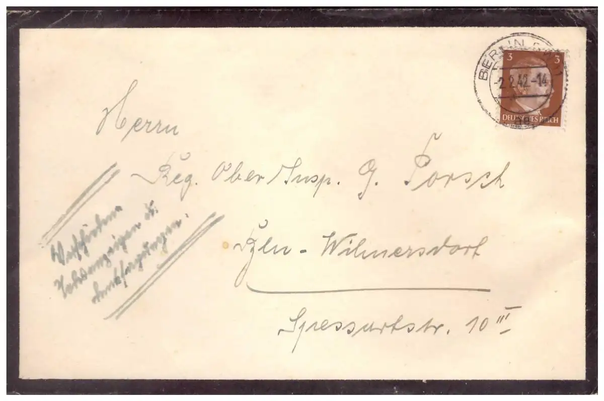 Dt- Reich (021010) Brief Drucksache gelaufen Berlin 2.2.1942