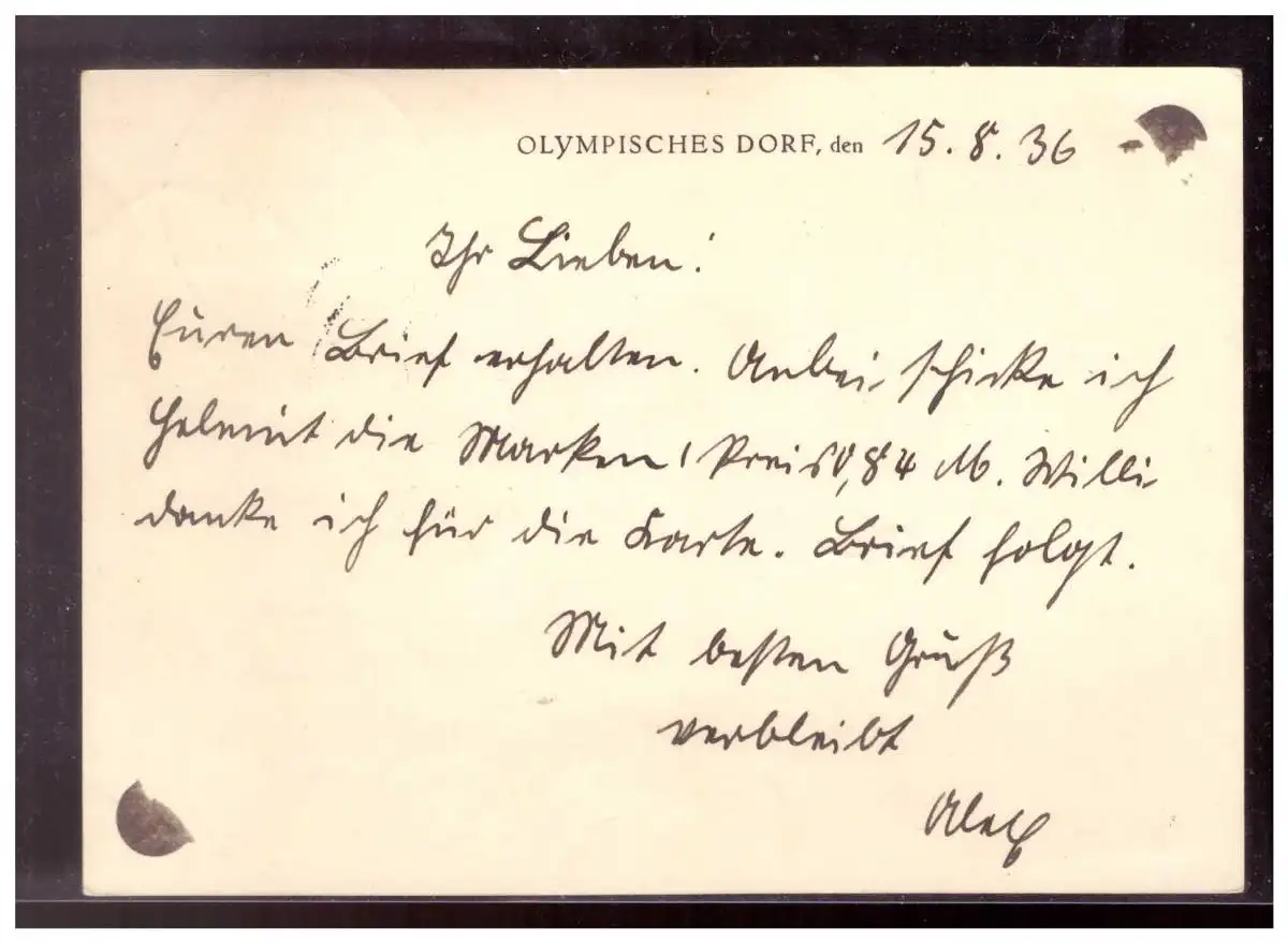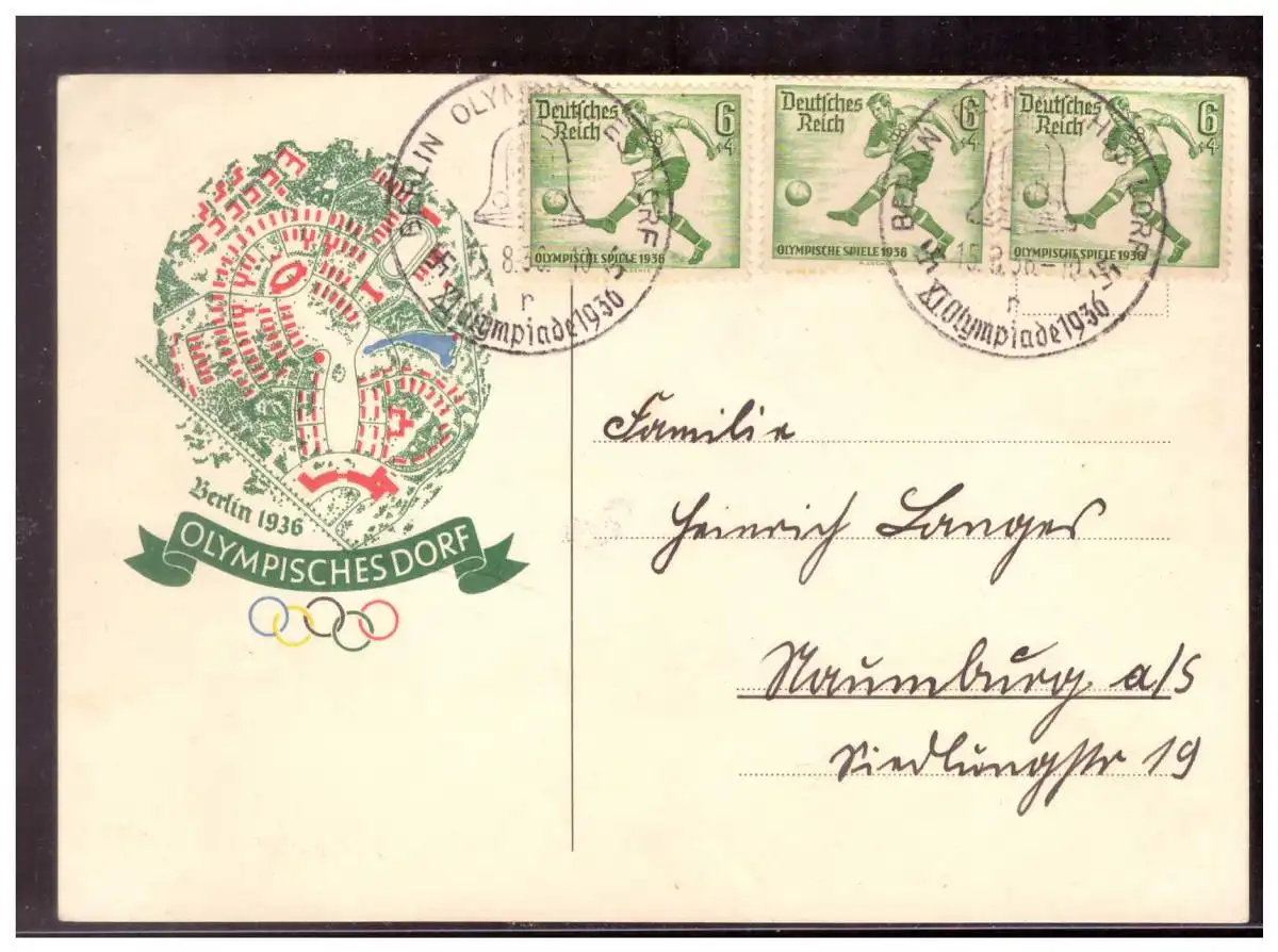 Dt-Reich (021241) Propaganda Postkarte mit Werbung Berlin 1936, Olympisches Dorf, gelaufen mit SST Berlin 15.8.1936