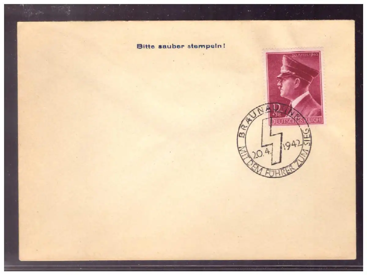Dt- Reich (021342) Propaganda Beleg mit MNR 813 blanco mit SST Braunau, mit dem Führer zum Sieg gest. 20.4.1942