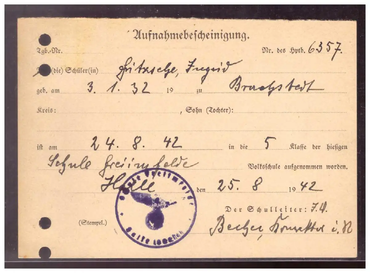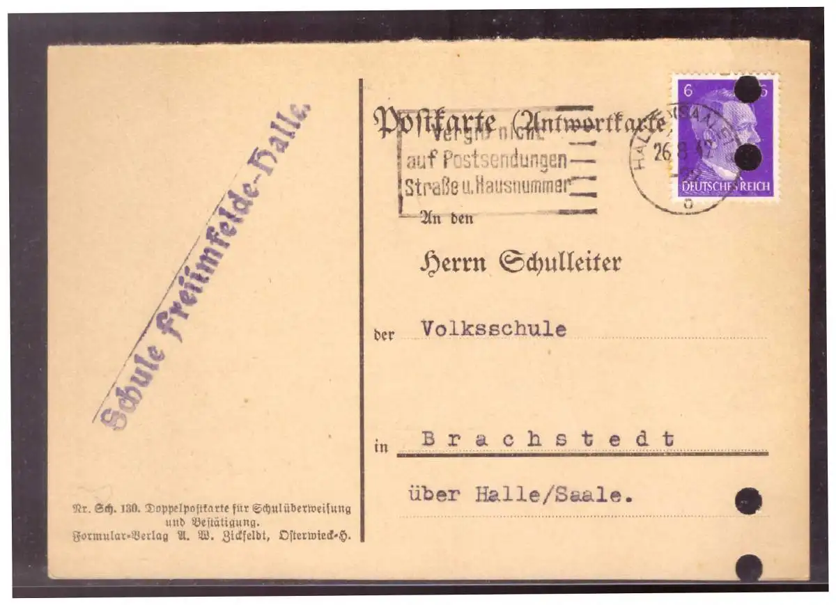 Dt- Reich (021349) Postkarte Halle/ Saale, Aufnahmebescheinigung, nach Brachstedt vom 26.8.1942