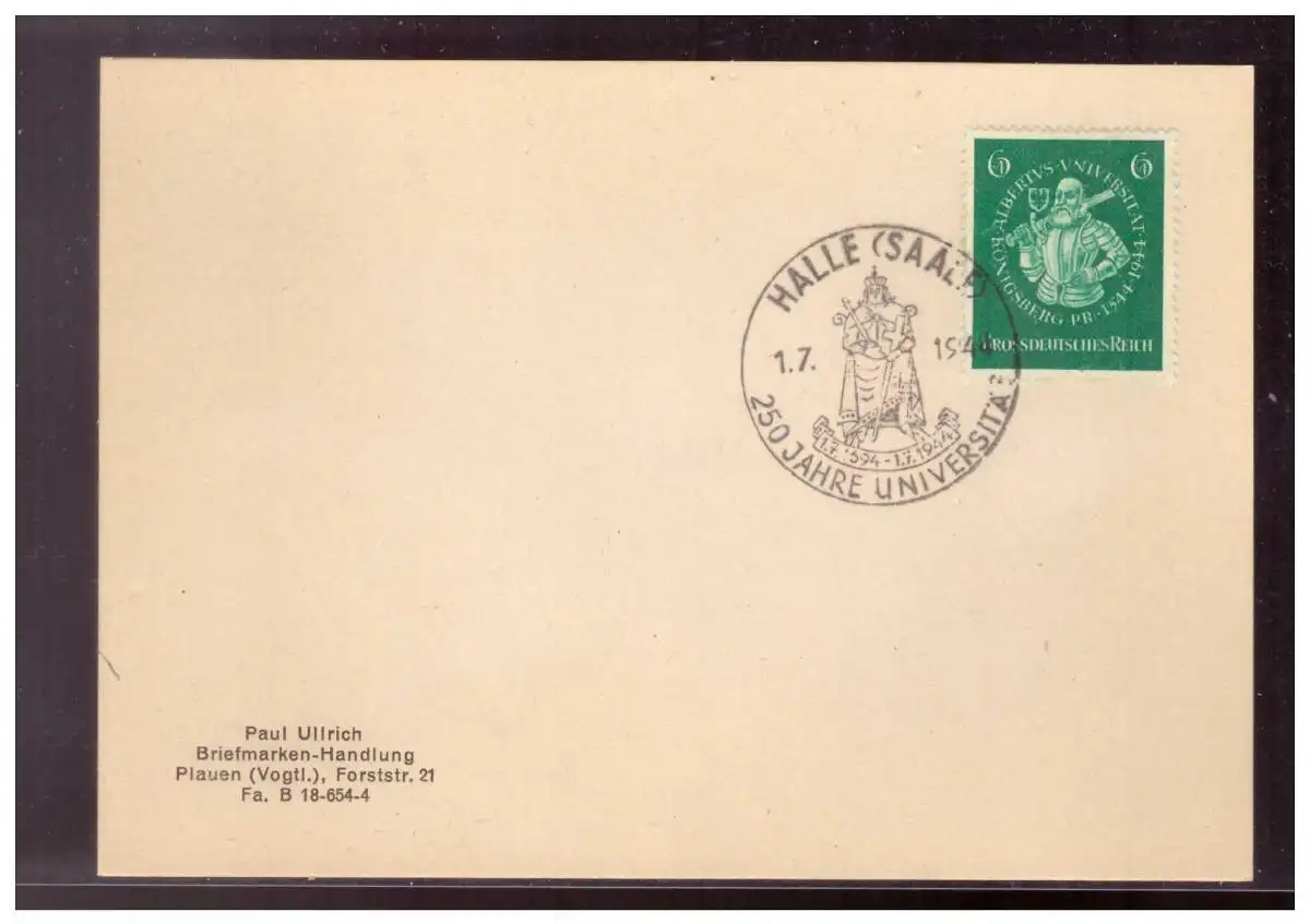 Dt- Reich (021375) Beleg blanco gestempelt mit MNR 896, ESST Halle, 250 Jahre Universität vom 1.7.1944