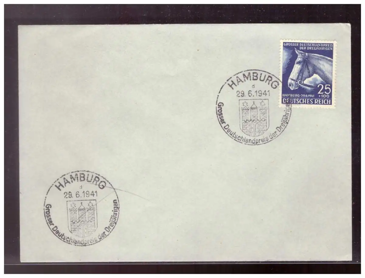 Dt- Reich (021379) Umschlag blanco gestempelt MNR 779 mit SST Hamburg Großer Deutschlandpreis der Dreijährigen vom 29.6.