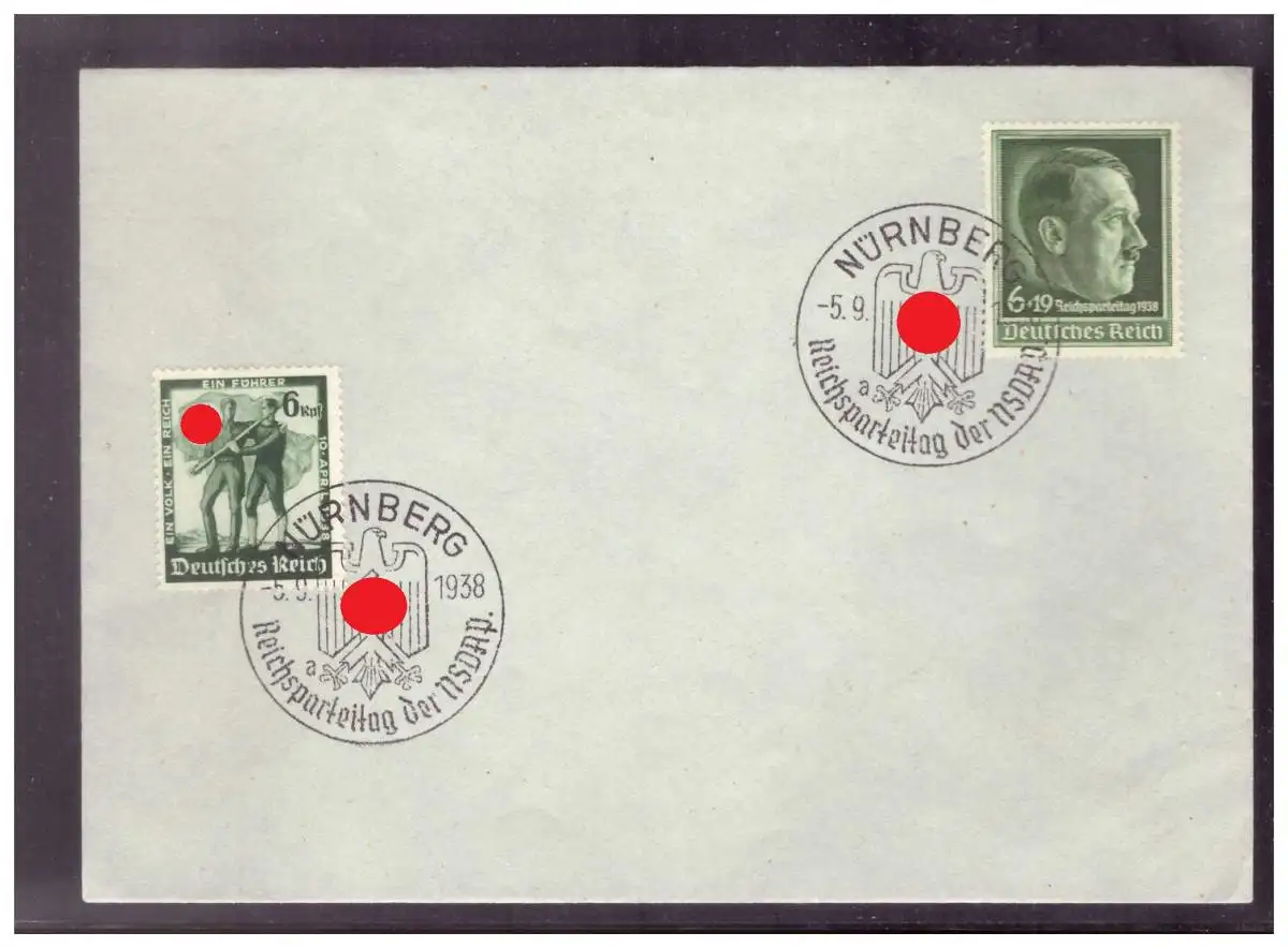 Dt.-Reich (021383) Beleg MNR 662, 672 mit SST Nürnberg Reichsparteitag der NSDAP vom 5.9.1938