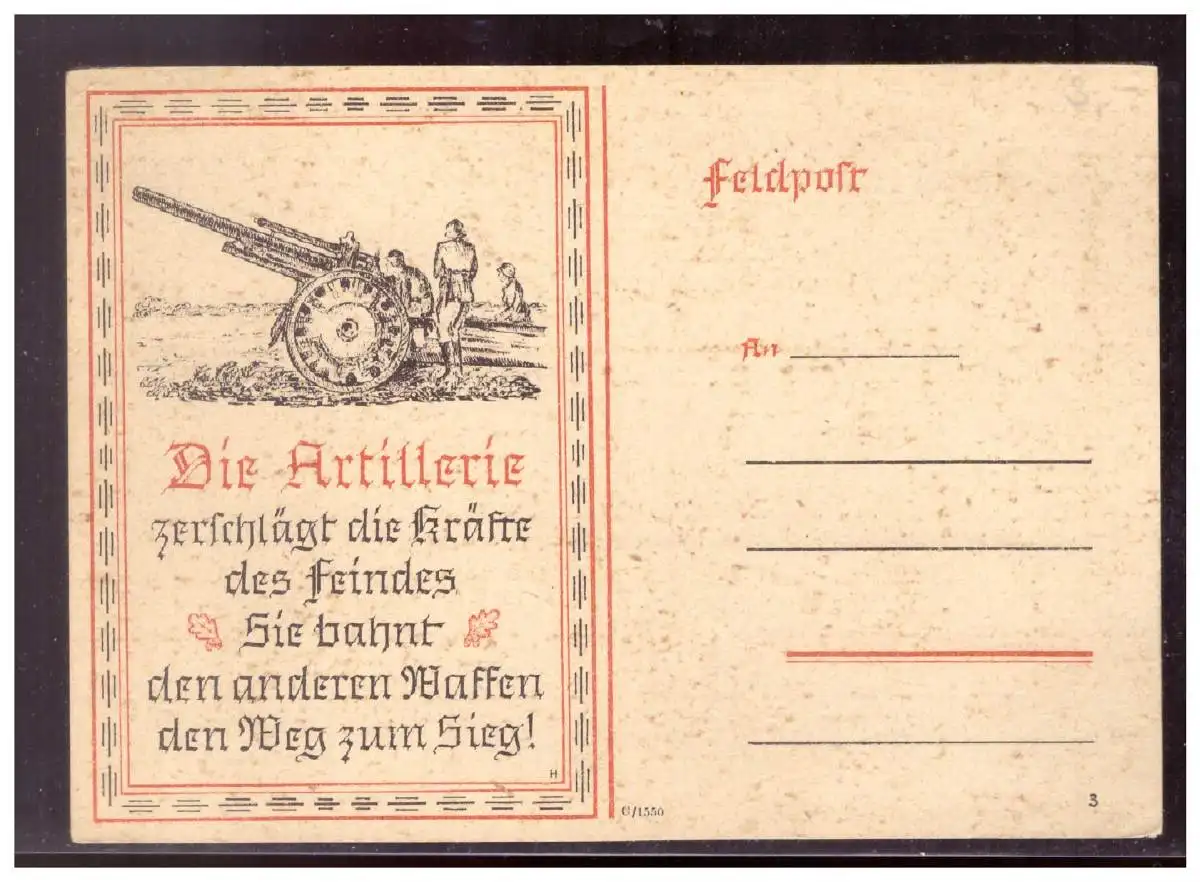 Dt- Reich (021409) Postkarte Die Artillerie, Feldpost RS blanco Stempel vom 7.11.1927