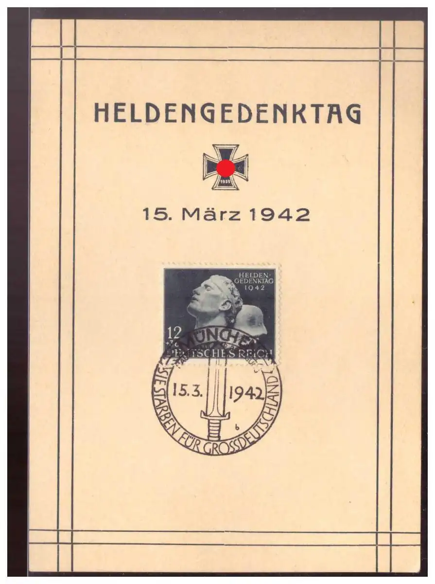 DT- Reich (021475) Propaganda Gedenkblatt Heldengedenktag 15.März 1942, mit SST München Sie starben für Grossdeutschland