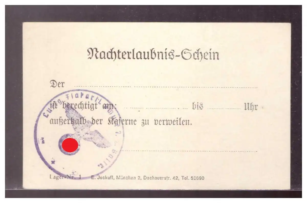 Dt- Reich (022012) WK II Nachterlaunis Schein ungebraucht, blanco gestempelt mit Truppenstempel