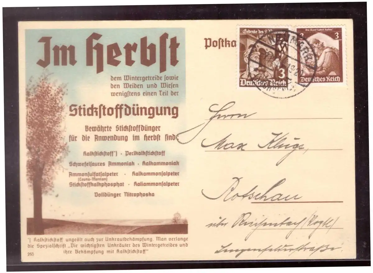 Dt- Reich (022158) Werbepostkarte Im Herbst Stickstoffdüngung, gelaufen Neumark 7.12.1935