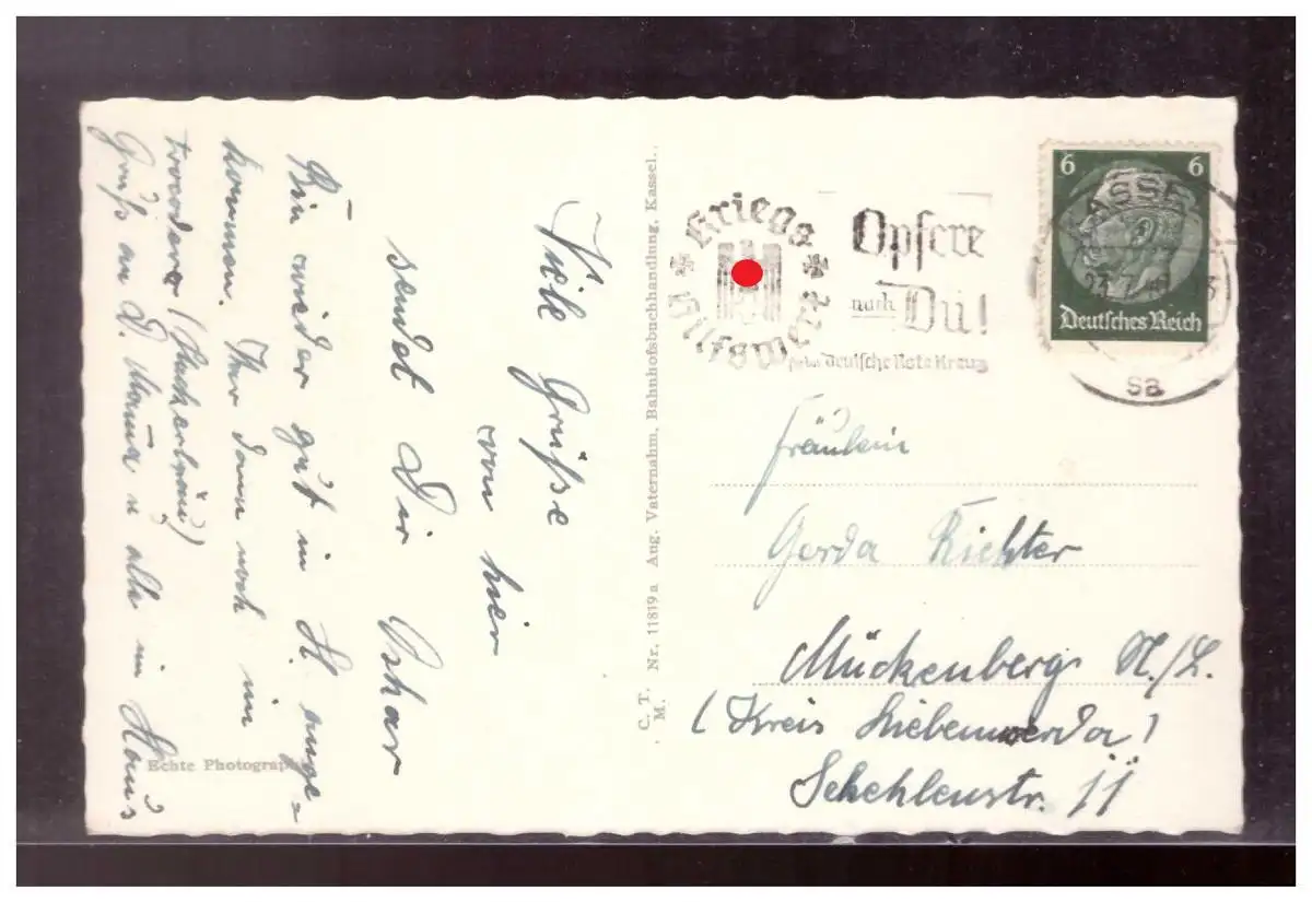 Dt- Reich (022269) Postkarte Kassel mit Postwerbestempel Kriegshilfwerk Opfer auch Du!, gel. Kassel