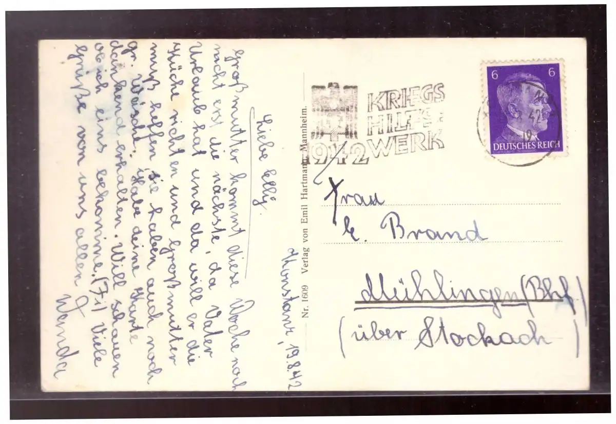 Dt- Reich (022270) Postkarte Lindau mit Postwerbestempel Kriegshilfswerk 1942, gelaufen