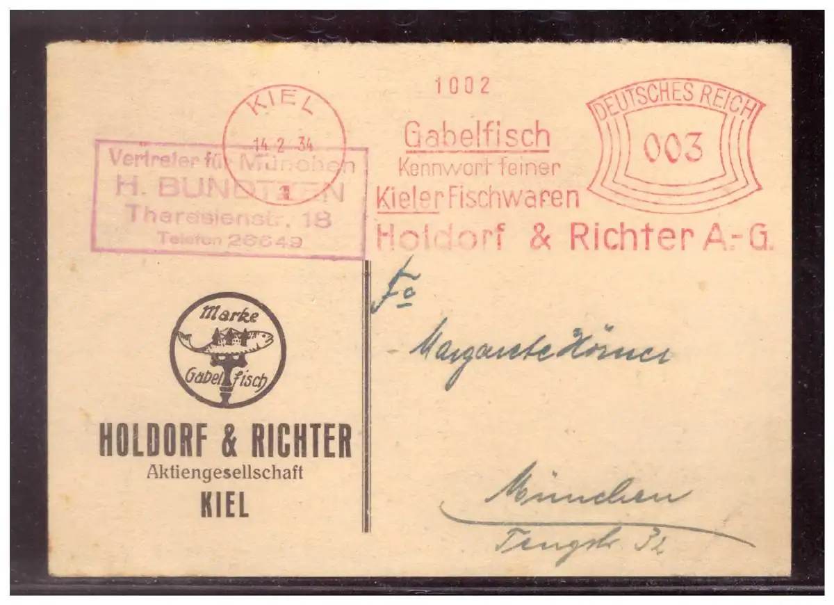 Dt- Reich (022332) Firmenpostkarte vorgedruckt mit Freistempler Holdorf & Richter Kiel