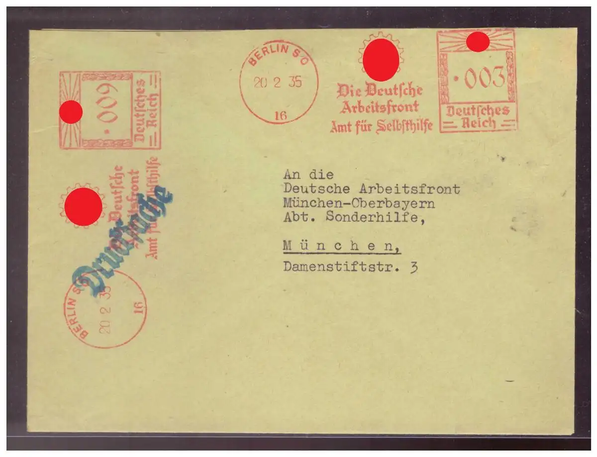 Dt- Reich (022368) Freistempler Die Deutsche Arbeitsfront Berlin 30.2.1935 2 mal auf Brief