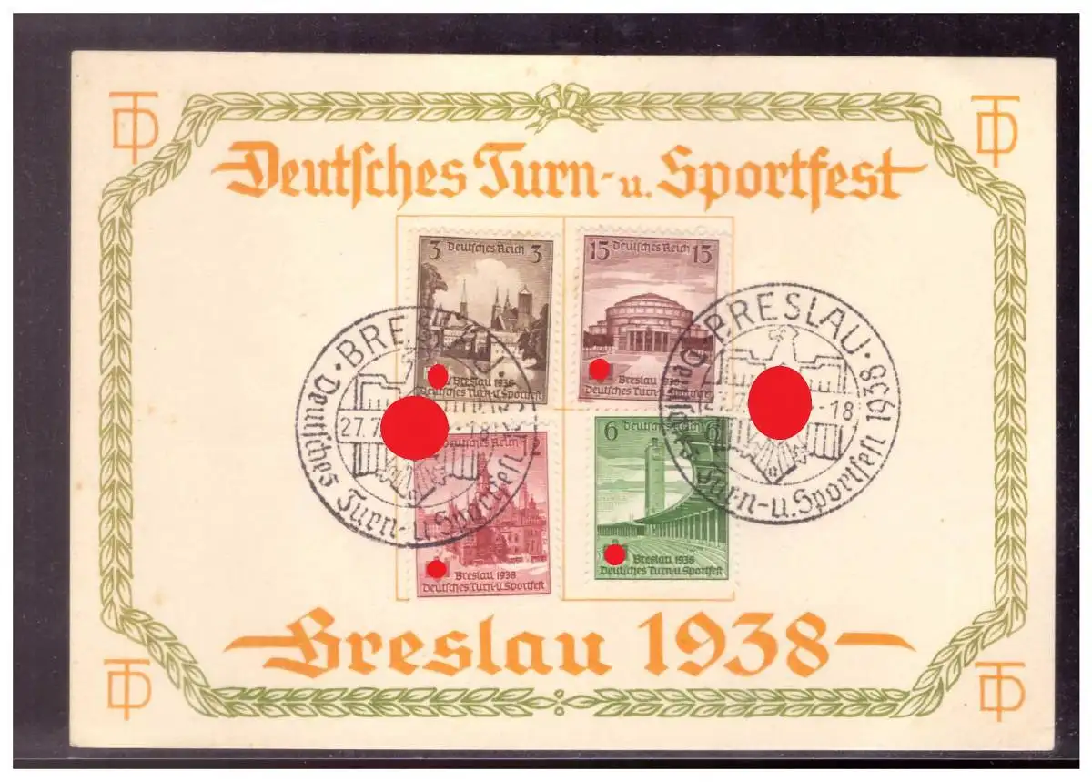 Dt.- Reich (022431) Gedenkkblatt, Deutsches Turn u. Sportfest Breslau 1938 mit 2 SST Breslau 27.7.1938