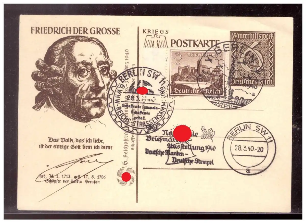 DT- Reich (022443) Ganzsach P286/ 04 Friedrich der Große mit KDF Zudruck blanco mit 3 Sonderstempel Berlin 28.3.1940