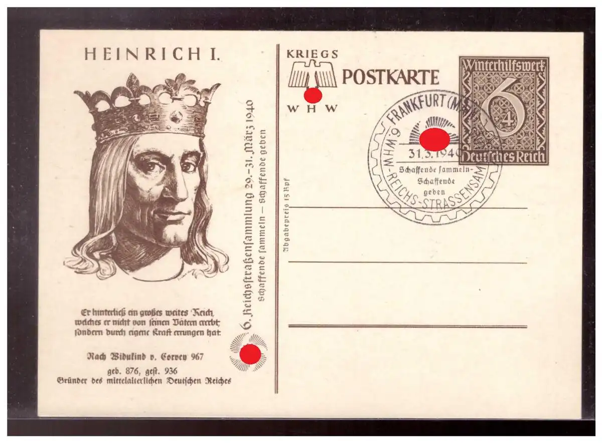 DT- Reich (022444) Ganzsach P286/ 01 Heinrich I mit KDF Zudruck, blanco gestempelt mit SST Frankfurt 31.3.1940
