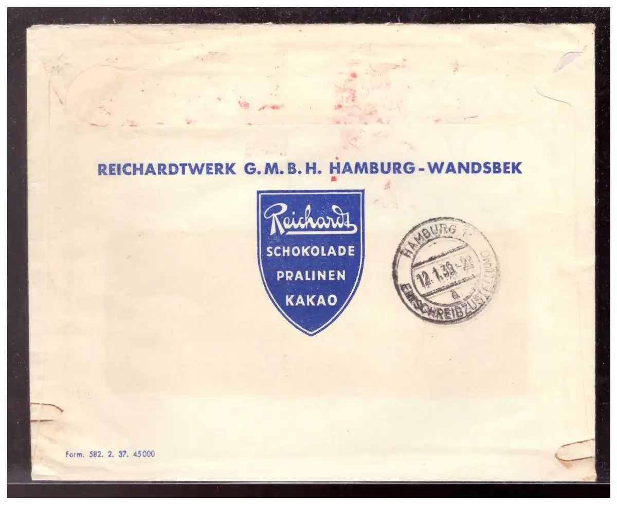 Dt- Reich (022561) Einschreiben Fensterbrief mit Freistempler Reichard Kakau, Schokolade, Pralinen, gelaufen