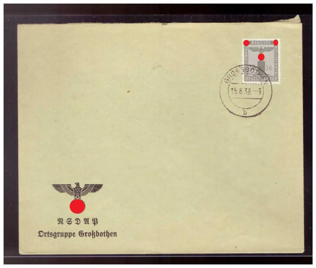 Dt- Reich (022602) Vorgedruckter NSDAP Umschlag blanco gestempelt Grossbothen mit MNR 151 gestempelt Grossbothen 15.6.19