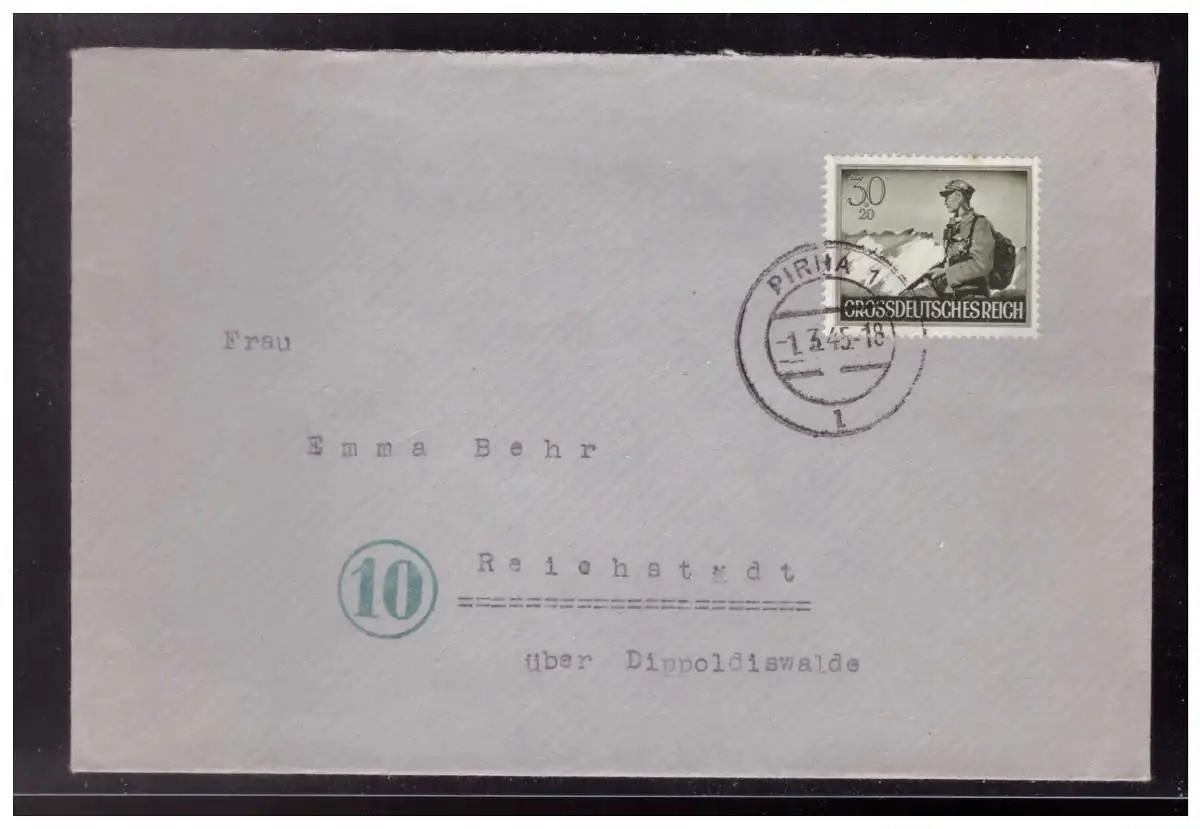 Dt- Reich (022813) Brief gelaufen mit TST Pirna 1. 3.1945 (Späte Post)