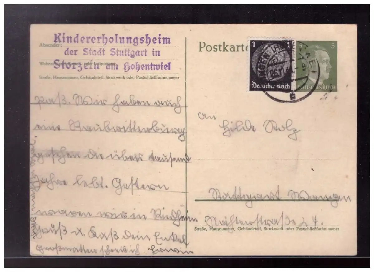 Dt- Reich (022849) Ganzsache mit ZF Absenderstempel Kindererholungsheim der Stadt Stuttgart in Storzeln am Hohentwiel ge