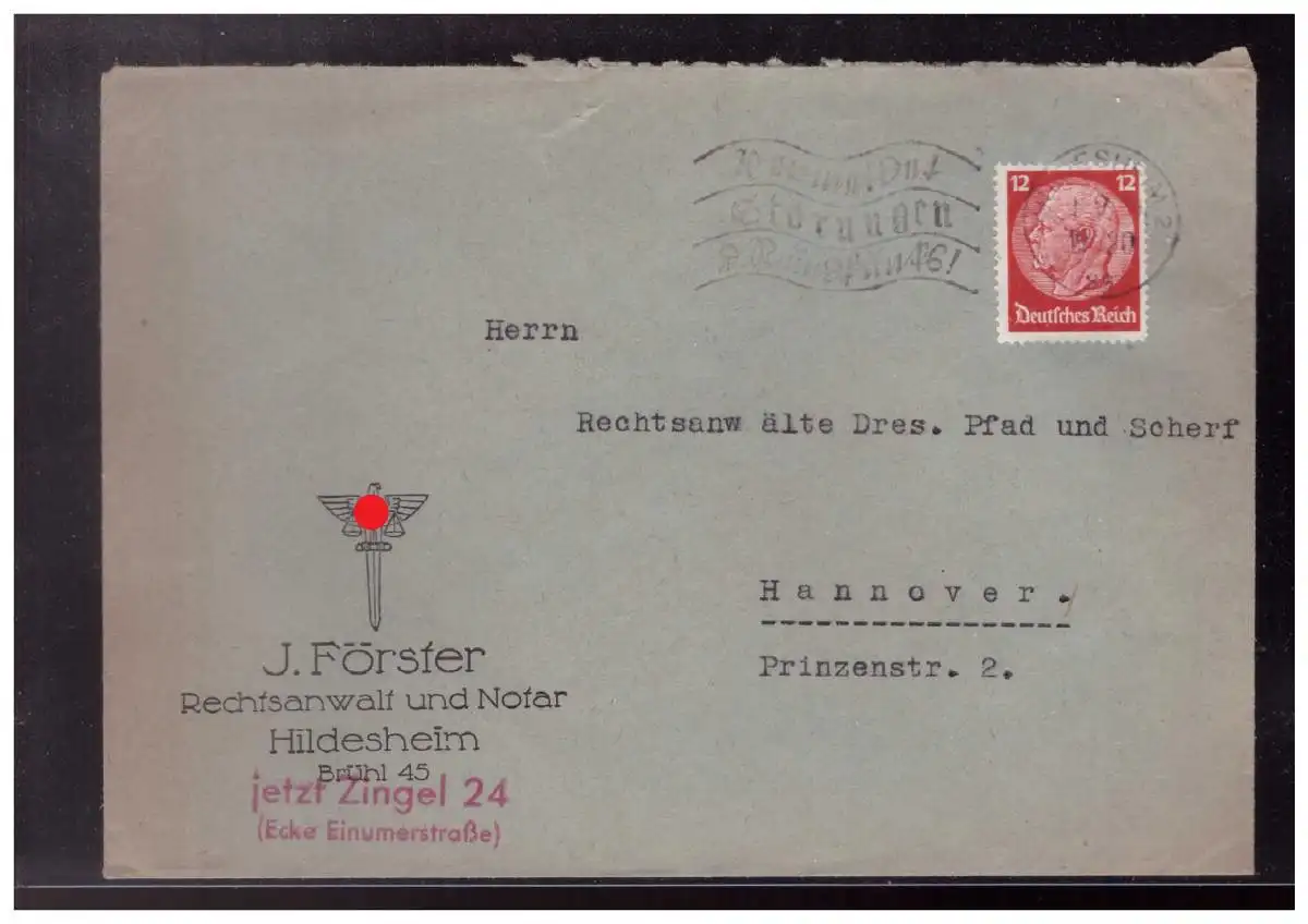 Dt- Reich (022853) Vorgedruckter Brief J.Förster Rechtsanwalt gelaufen Hildesheim