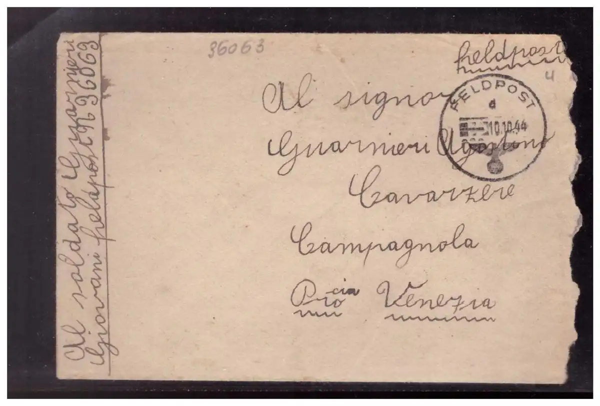 Dt- Reich (022884) Feldpostbrief FPNR 36063 Veterinär Italiener in der Wehrmacht, gelaufen 10.10.1944
