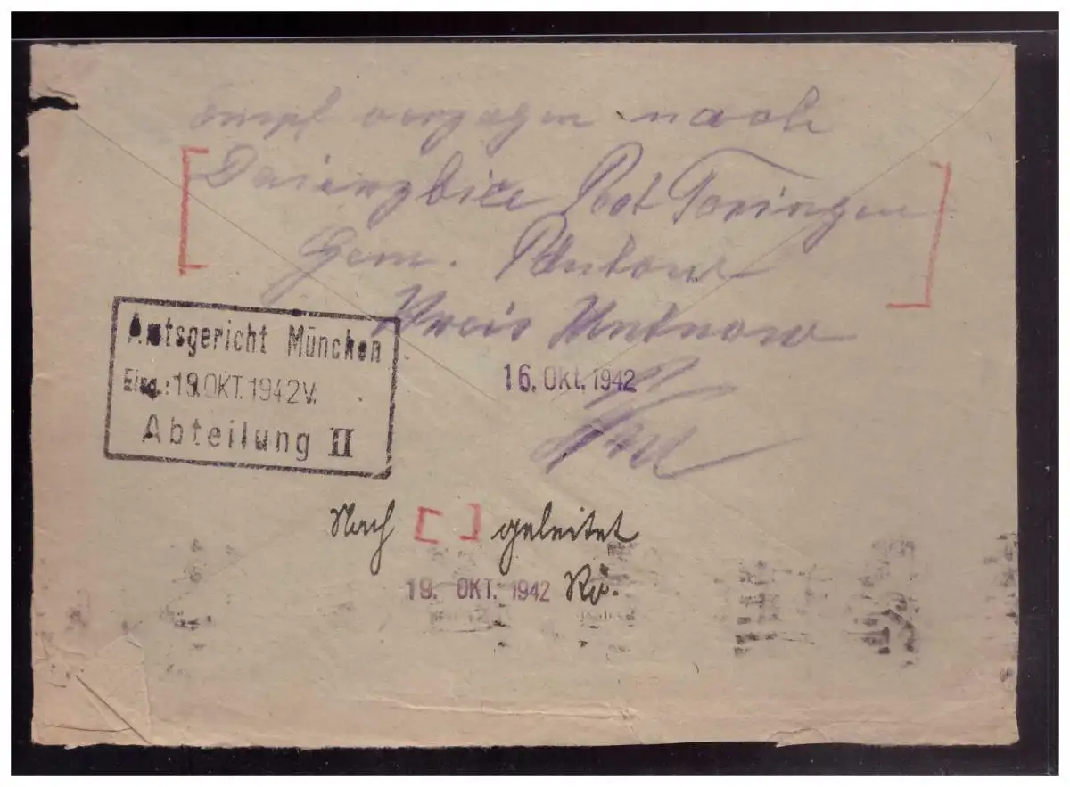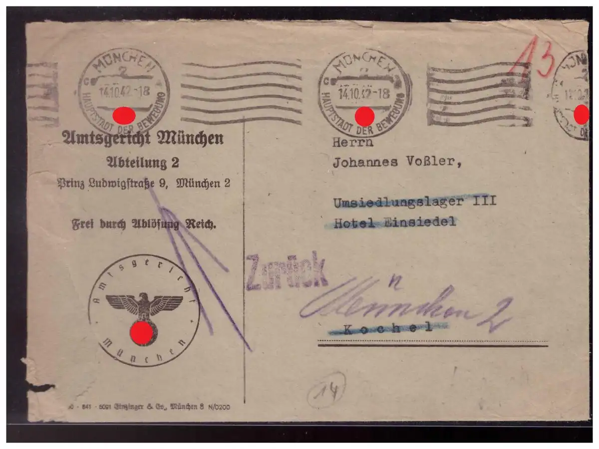 Dt- Reich (023044) Brief Umsiedlung der Deutschen in Ostgebiete, in Münchner Lager, gelaufen mit SST 14.10.1942