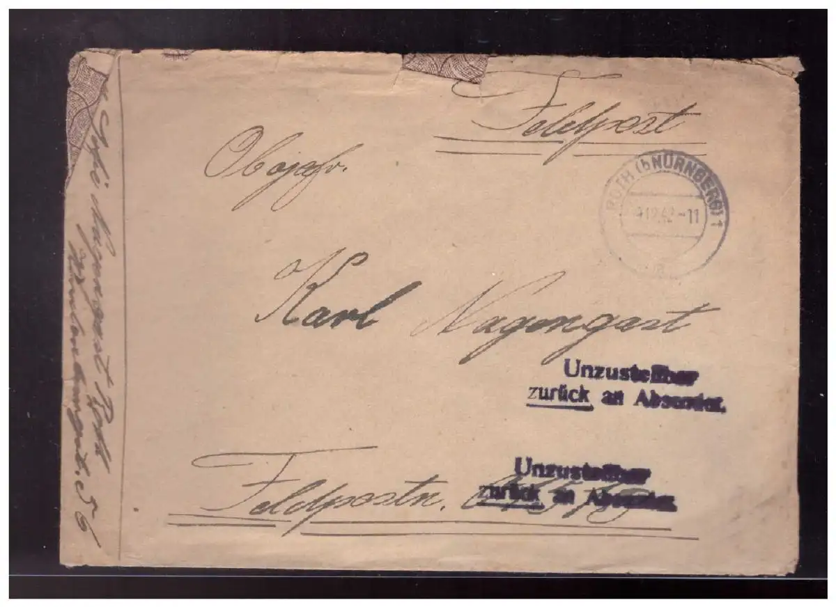 Dt- Reich (023090) Feldpostbrief FPNR 01513 Stab Inf Rgt 260 (Stalingrad) gelaufen 9.12.1942 mit Stempel unzustellbar