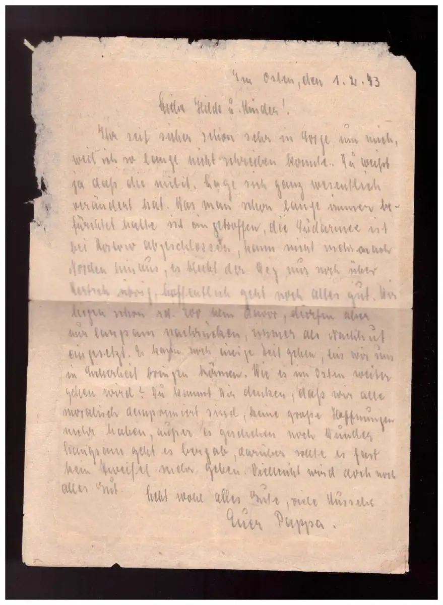 Dt- Reich (023092) Feldpostbrief FPNR 20471 Brief vom 1.2.1943 Stimmungsberich vom Tag nach der Kapitulation gelaufen.