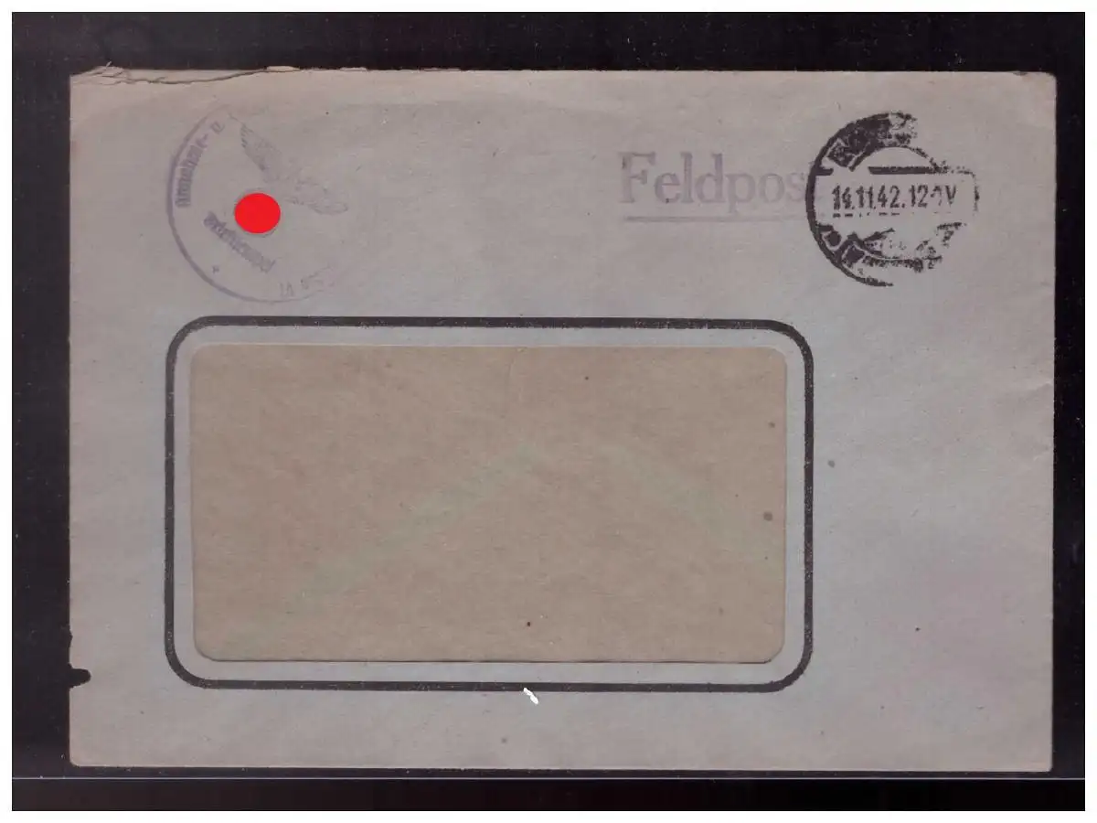Dt- Reich (023168) Feldpostfensterbrief mit geschwärzter Stempel -deutsch- gelaufen 11/ 42