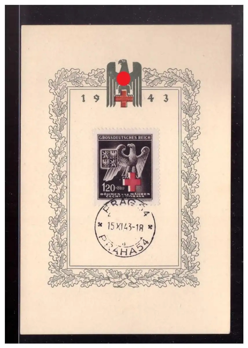 Böhmen und Mährer (023200) Gedenkblatt SB 131b fürs Rote Kreuz mit Tagesstempel Prag am 15.11.1943