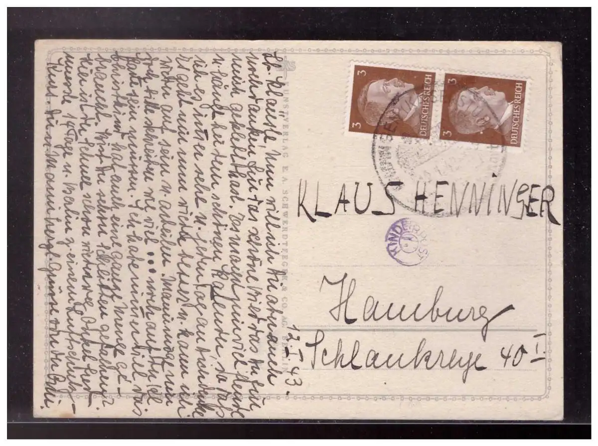 Dt- Reich (023202) PostkarteAK Hund gelaufen mit Sonderstempel vom 12.1.1943 und Stempel Kinderpost!