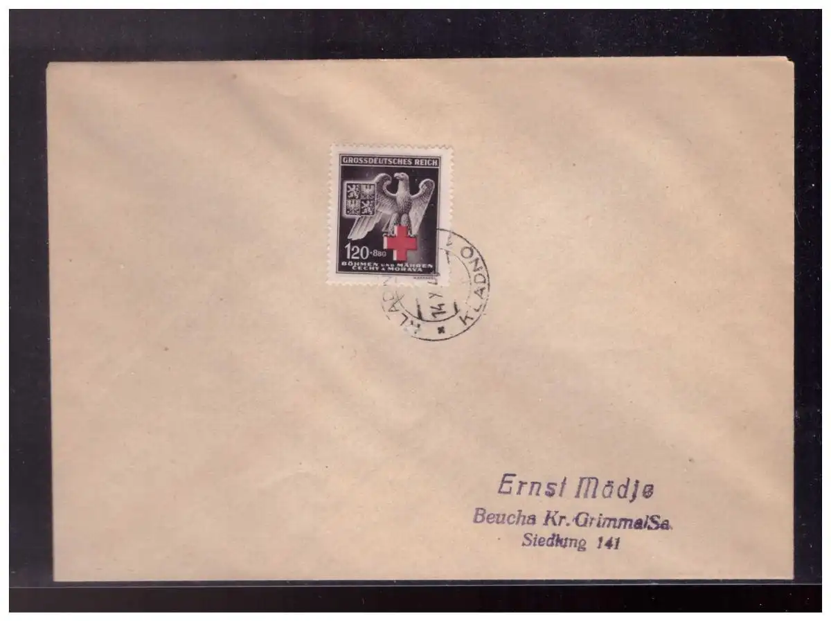 BM (023427) Brief mit MNR132 Rotes Kreuz gestempelt Kladno 14.10.1943