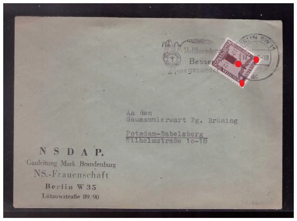 Dt- Reich (023615) Propaganda Vorgedruckter Dienstbrief NSDAP Gauleitung Mark Brandenburg NS-Frauenschaft, gelaufen 1942