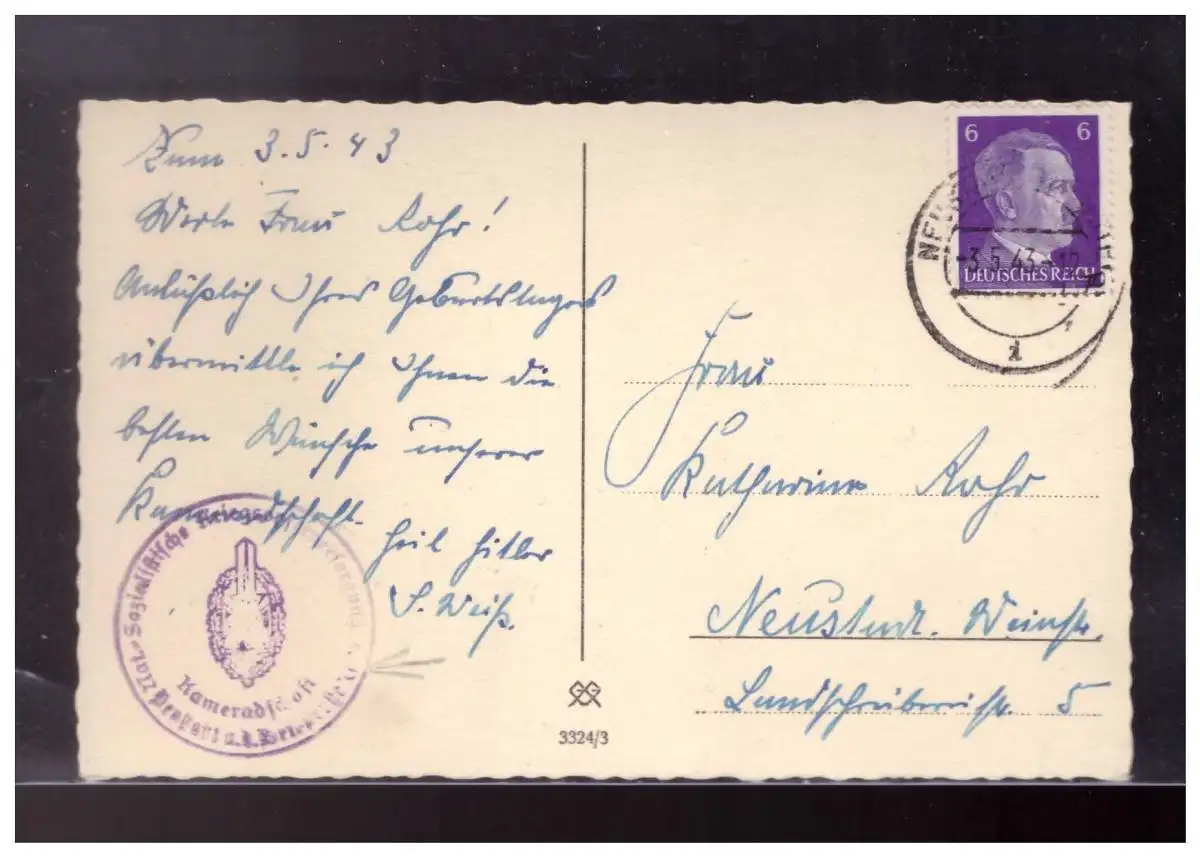 Dt- Reich (024172) Propaganda AK Nationalsozialistische Kriegsopferfürsorge Neustadt gelaufen 3.5.1943