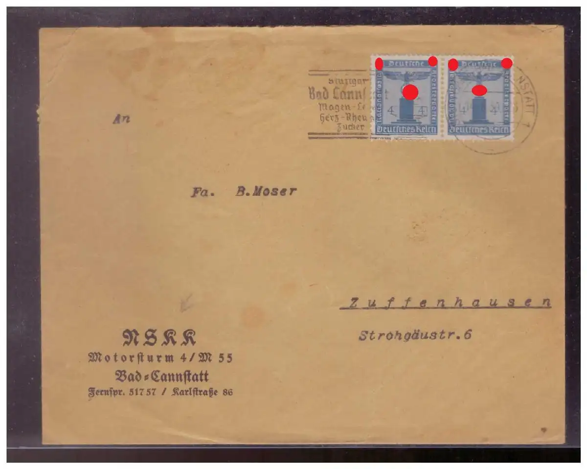 Dt- Reich (024622) Propaganda Vorgedruckter Dienstbrief NSKK Ortsgruppe Motorsturm 4/ M55, Bad-Cannstadt, gelaufen