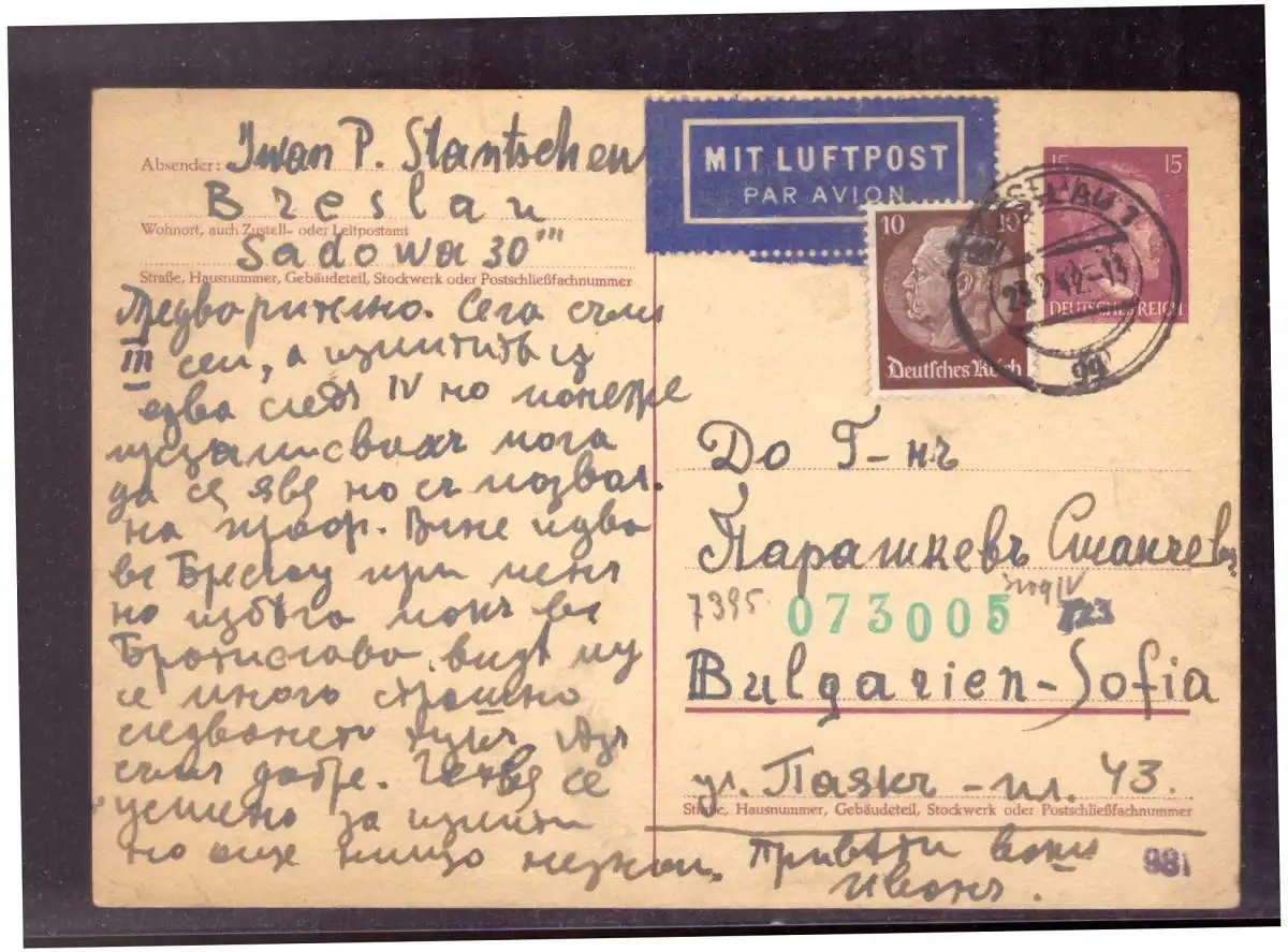 Dt- Reich (020237) Ganzsache P300 Auslandskarte- Luftpost gelaufen Breslau/ Bulgarien Sofia 23.2.42 mit OKW- Zensur