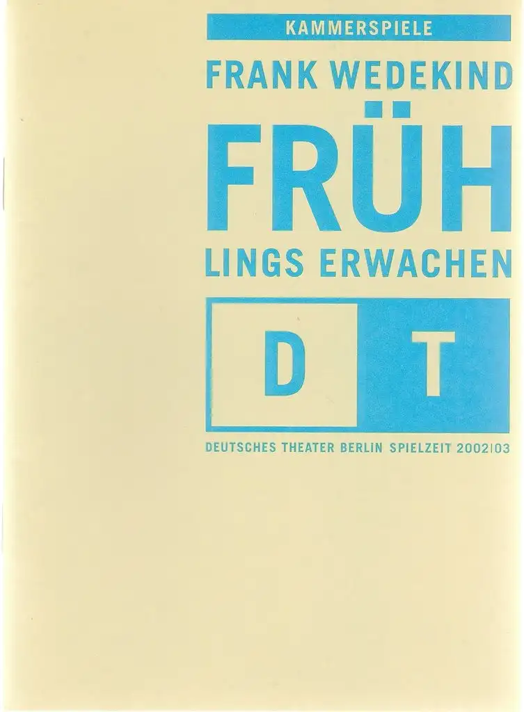 Deutsches Theater Berlin, Bernd Wilms, Anita Augustin-Huber, Viktoria Sandhofer: Programmheft Frank Wedekind FRÜHLINGS ERWACHEN Premiere 10 Januar 2003 Kammerspiele Spielzeit 2002 / 2003 Nr. 9.