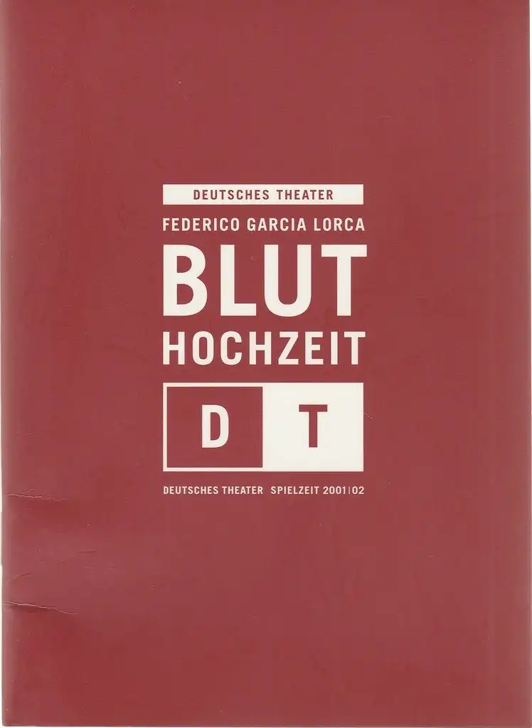Deutsches Theater Berlin, Bernd Wilms, Bettina Schültke, Christoph Oldenkotte, Wolfhard Theile ( Probenfotos ): Programmheft Federico Garcia Lorca BLUTHOCHZEIT Premiere 20. September 2001 Spielzeit 2001 / 02 Nr. 1.