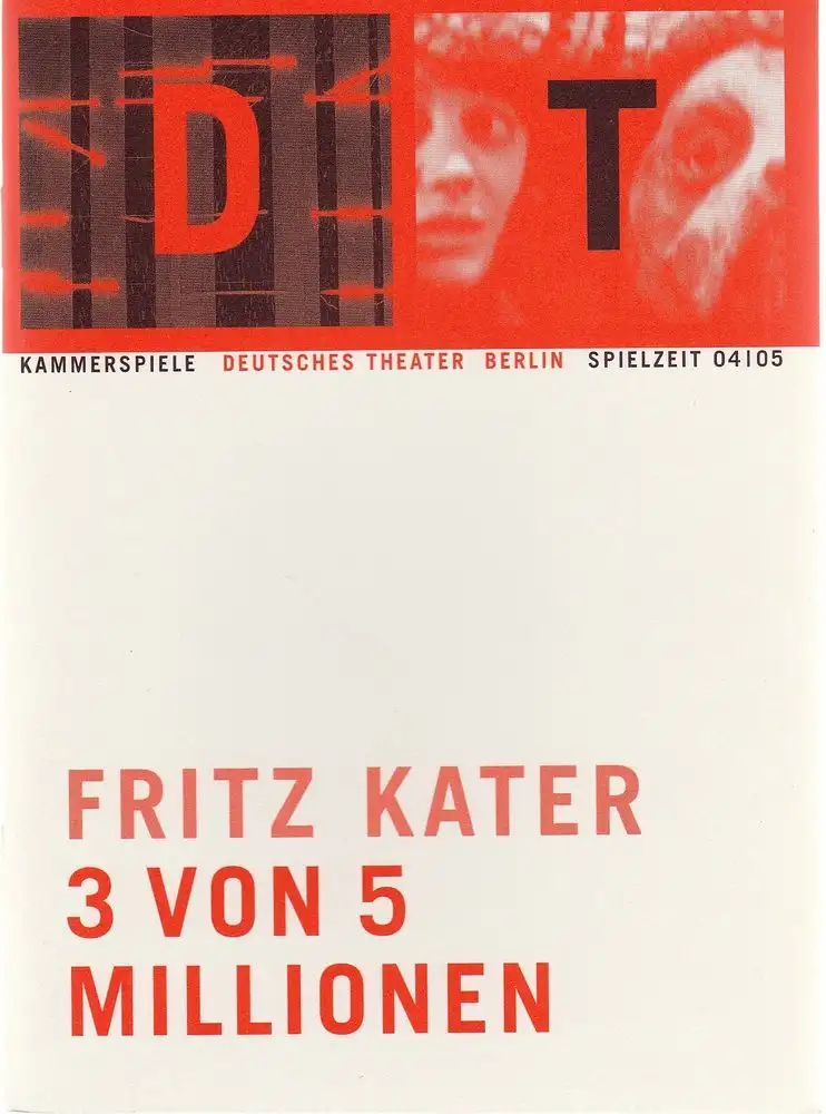 Deutsches Theater Berlin, Bernd Wilms, Oliver Reese, Bernd Stegemann, Christiane Dietrich, Iko Freese, Sophia Paeslack: Programmheft Fritz Kater 3 VON 5 MILLIONEN Premiere 15. Januar 2005 Kammerspiele Spielzeit 2004 / 05 Heft 10.