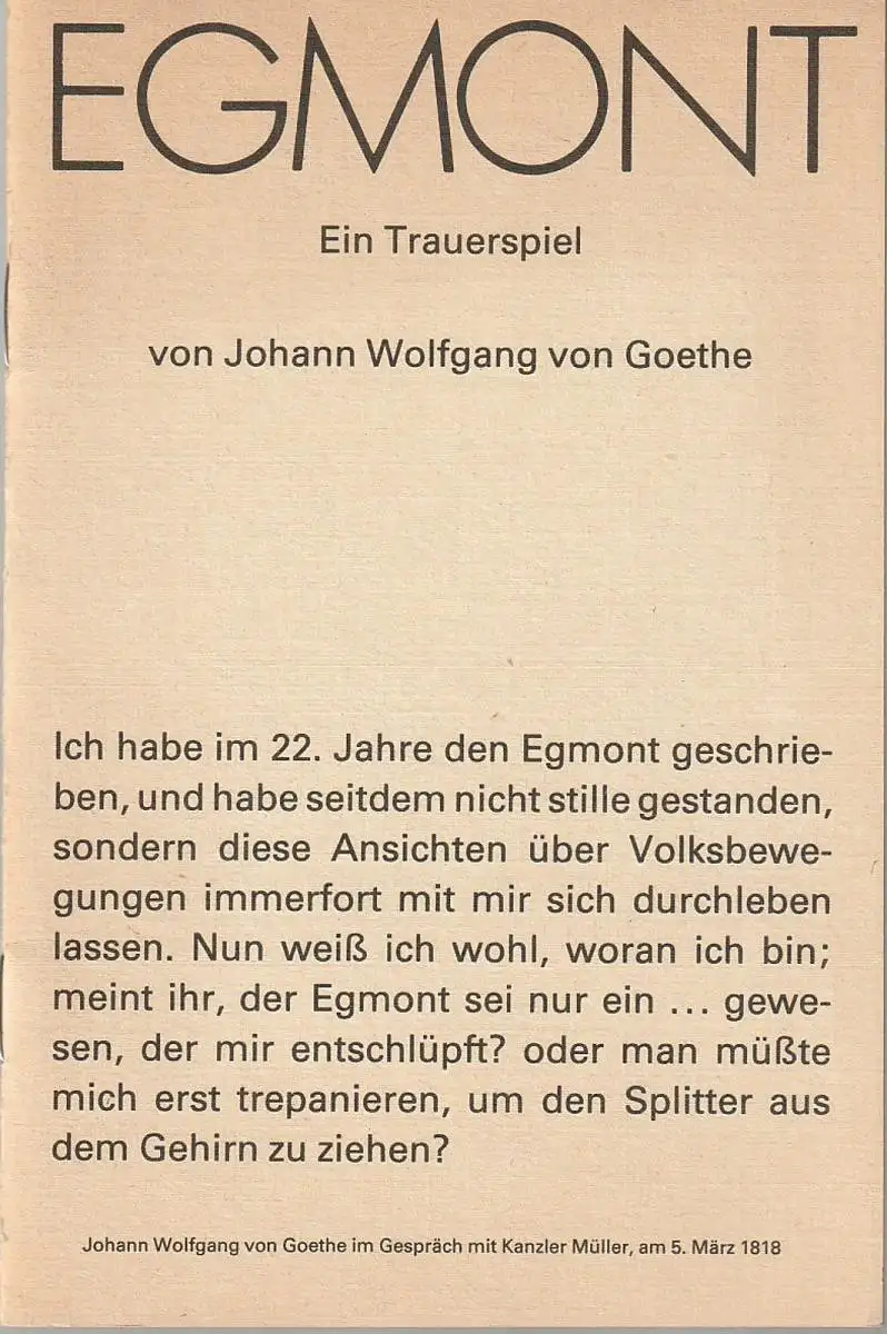 Deutsches Theater Berlin, Staatstheater der DDR, Dieter Mann, Helmut Rabe, Hans-Martin Rahner, Heinz Rohloff: Programmheft Johann Wolfgang von Goethe EGMONT Spielzeit 1985 / 86.