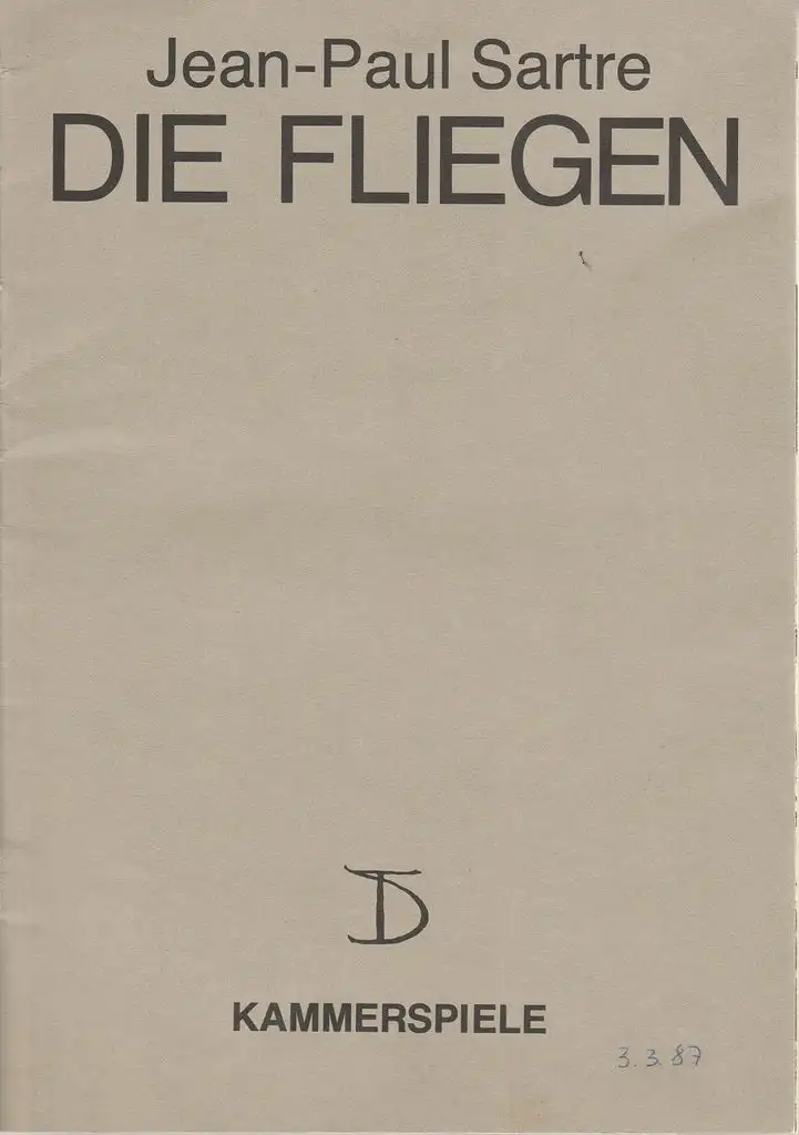 Titel: Programmheft Jean-Paul Sartre DIE FLIEGEN DDR-Erstaufführung Premiere 24. Januar 1987 Kammerspiele Spielzeit 1986 / 87