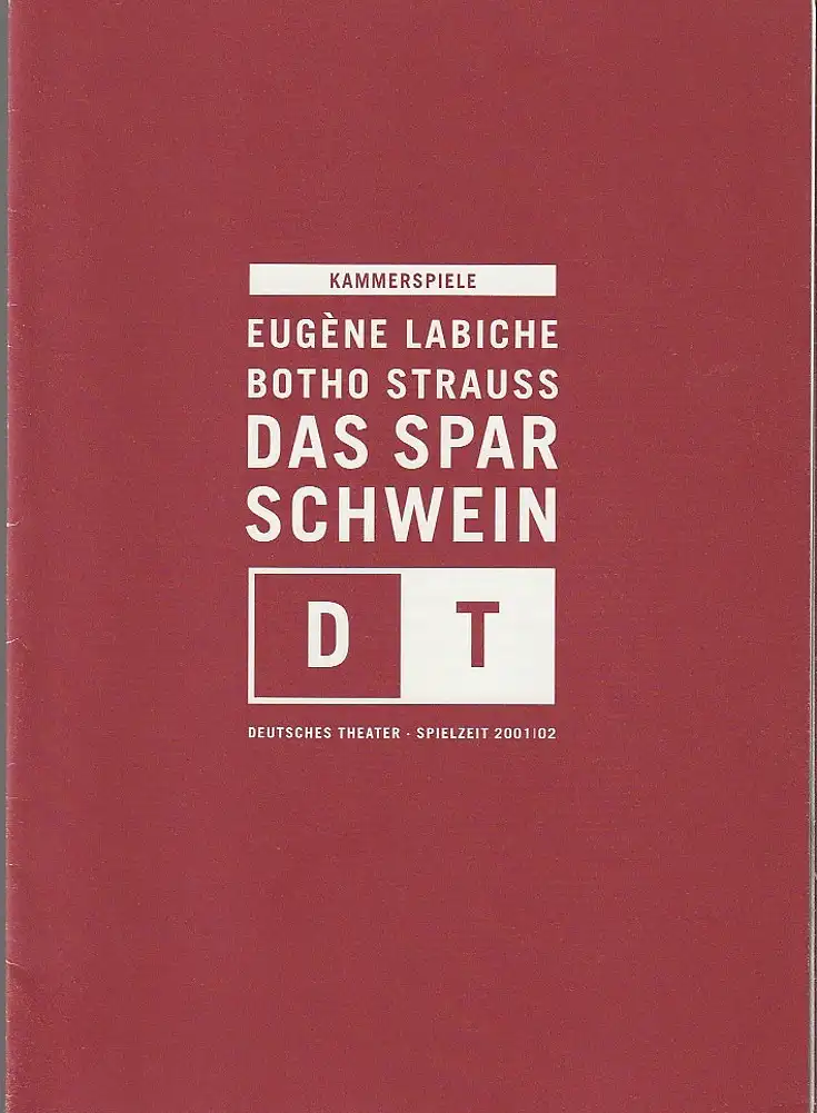 Deutsches Theater Kammerspiele, Bernd Wilms, Birgit Rasch, Arno Declair ( Probenfotos ): Programmheft Eugene Labiche / Botho Strauss DAS SPARSCHWEIN Premiere 23. November 2001 Spielzeit 2001 / 02 Nr. 9.