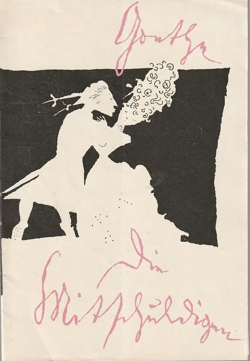 Lustspiel in drei Akten. Regie: Wolfgang Langhoff und Wolf-Dieter Panse. Bühne und Kostüme: Annemarie Rost. Mitwirkende: Walter Lendrich / Josef von Santen, Gudrun Ritter / Annelene Hischer, Friedo Solter / Peter Dommisch, Horst Drinda / Eberhard Esche, Georg-Michael Wagner / Joachim Bober. Musik: Reiner Bredemeyer - Theaterprogramm, Opernprogramm, Ballettprogramm, Musicalprogramm, Konzertprogramm, Theatermemorabilia, Programmhefte Sammlung, deutsche Theatergeschichte.