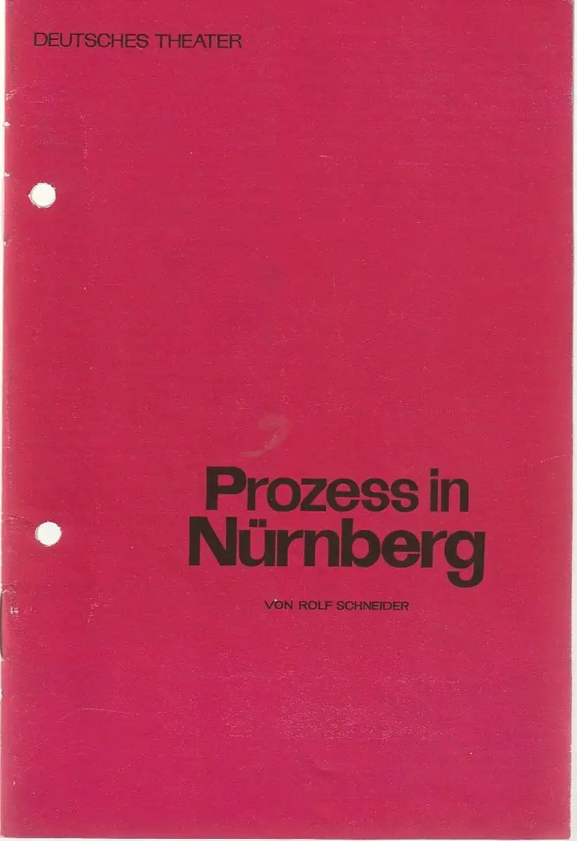 Titel: Programmheft Rolf Schneider PROZESS IN NÜRNBERG Premiere 15. Oktober 1967 Spielzeit 1967 / 68 Heft 4