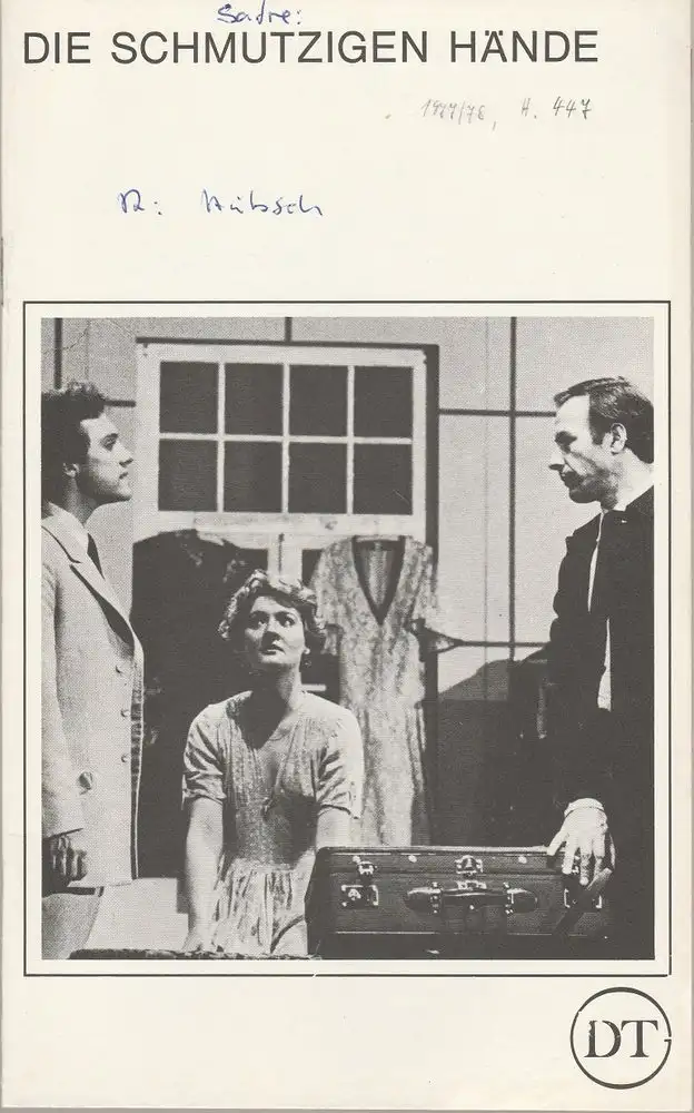 Deutsches Theater in Göttingen, Günther Fleckenstein, Norbert Baensch: Programmheft Die schmutzigen Hände. Les Mains sales. Schauspiel von Jean-Paul Sartre. Spielzeit 1977 / 78 Blätter des Deutschen Theaters in Göttingen Heft 447.