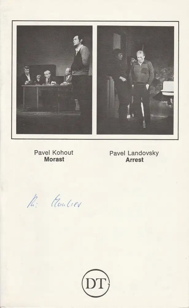 In Anwesenheit von Pavel Kohout und Pavel Landovsky. Der sechste Einakter über Vanek. Uraufführung / Deutsche Erstaufführung. Inszenierung: Gustav Manker. Bühnenbild: Thomas Richter-Forgach. Kostüme: Susanne Kloiber. Mitwirkende: Manfred Paethe, Heinz Hans, Erich Röder, Eberhard Müller-Elmau, Wolfgang Gellert, Jürgen Morche, Barbara Blume - Theaterprogramm, Opernprogramm, Ballettprogramm, Musicalprogramm, Konzertprogramm, Theatermemorabilia, Programmhefte Sammlung, deutsche Theatergeschichte.