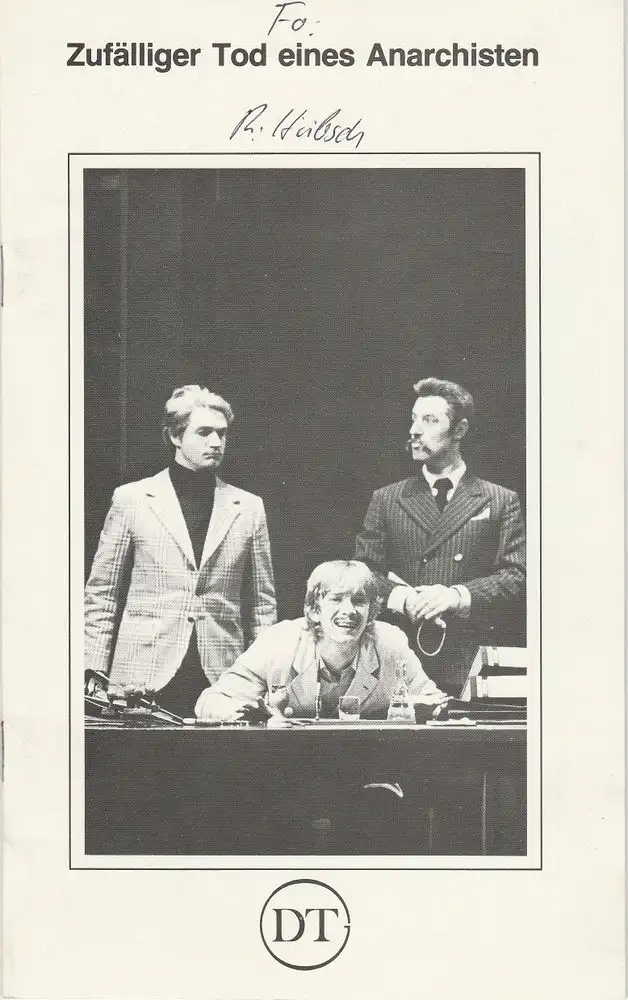 Inszenierung: Dietrich W. Hübsch. Bühnenbild und Kostüme: Thomas Richter-Forgach. Mitwirkende: Thomas Weiske, Alwin Woesthoff, Heinz Hans, Wolfgang Gellert, Elsbeth May, Horst Niggemann - Theaterprogramm, Opernprogramm, Ballettprogramm, Musicalprogramm, Konzertprogramm, Theatermemorabilia, Programmhefte Sammlung, deutsche Theatergeschichte.