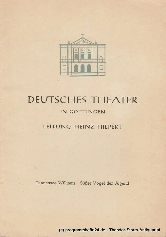 Schauspiel von Tennessee Williams. Regie: Ulrich Hoffmann. Bühnenbild und Kostüme: Lothar Baumgarten. Mitwirkende: Günther Ungeheuer, Hannelore Hinkel, Heinz Erwin Pfeiffer, Jöns Andersson, Marianne Prenzel, Margarete Andersen, Jörg Liebenfels, Eberhard Müller-Elmau, u.a. - Theaterprogramm, Opernprogramm, Ballettprogramm, Musicalprogramm, Konzertprogramm, Theatermemorabilia, Programmhefte Sammlung, deutsche Theatergeschichte.
