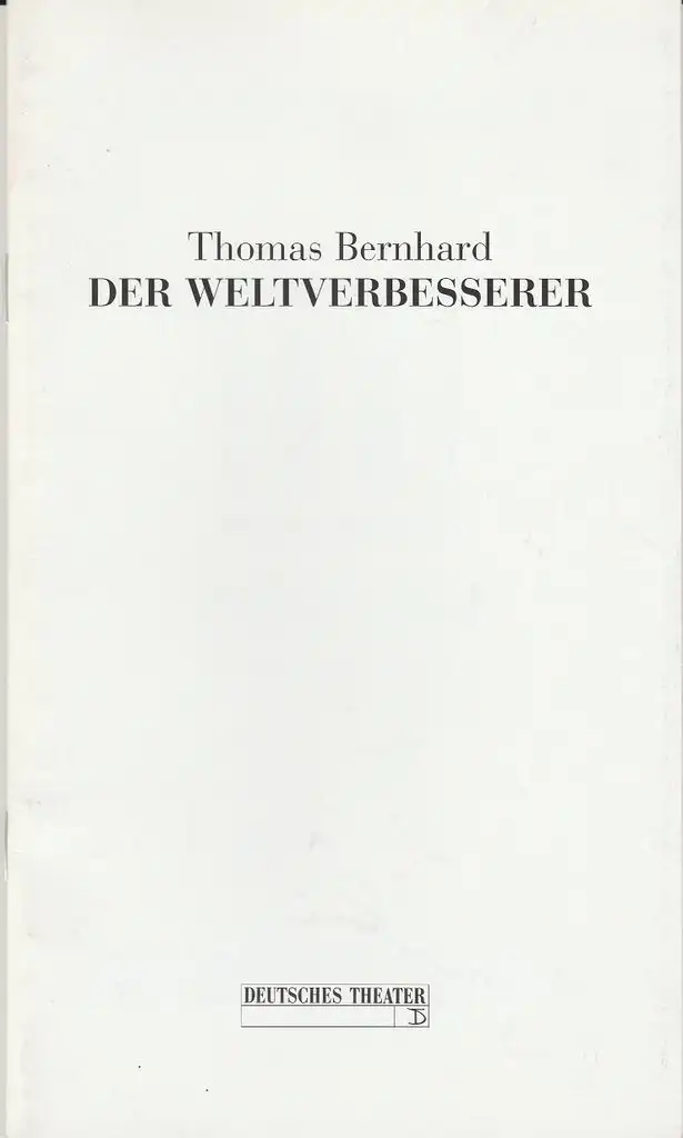 Deutsches Theater und Kammerspiele Berlin, Thomas Langhoff, Dieter Sturm, Marianne Wendt, Heinz Rohloff: Programmheft Thomas Bernhard DER WELTVERBESSERER Premiere 27. Februar 1998 Spielzeit 1997 / 98.