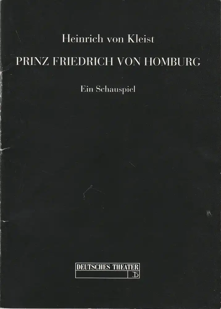 Deutsches Theater und Kammerspiele, Thomas Langhoff, Alexander Weigel, Andreas Lüder, Heinz Rohloff: Programmheft Heinrich von Kleist PRINZ FRIEDRICH VON HOMBURG Premiere 5. Oktober 1995 113. Spielzeit 1995 / 96.