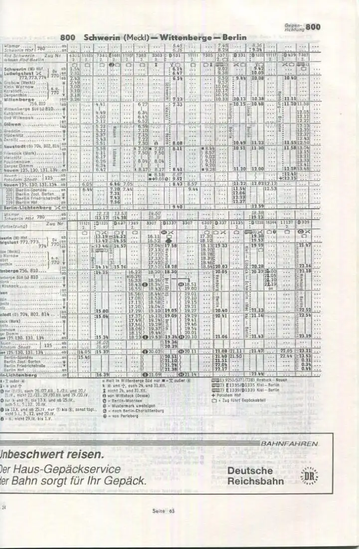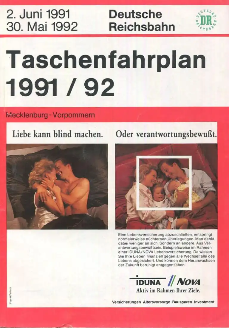 Deutschland - Deutsche Reichsbahn - Taschenfahrplan 1991/92 - Mecklenburg-Vorpommern - 112 Seiten und eine Übersichtskar